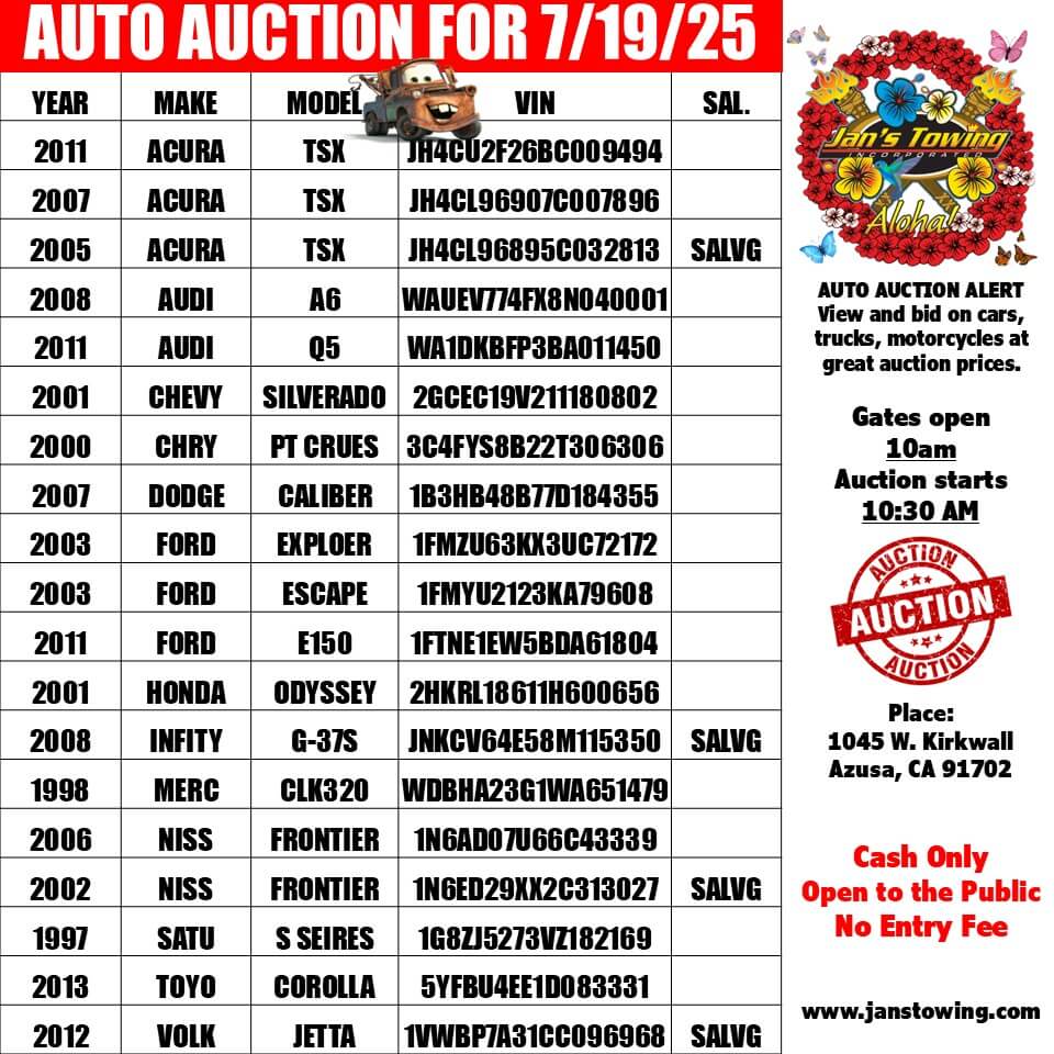 © 2024 Jan's Towing, Inc. Azusa CA