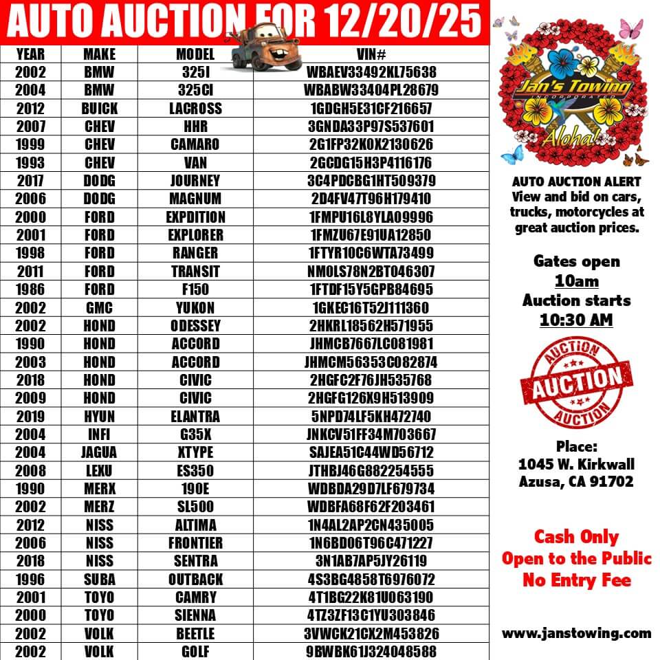 Subasta en persona únicamente – ya no usamos Joyride Autos ni Autura Marketplace