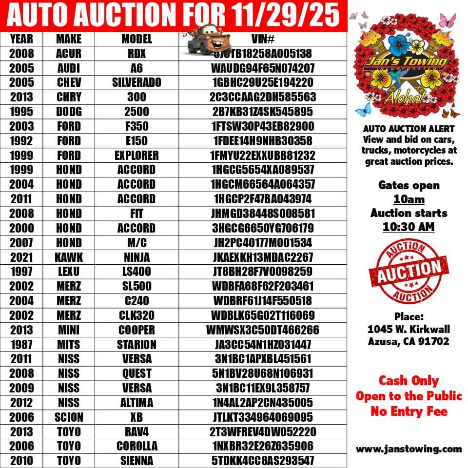 © 2024 Jan's Towing, Inc. Azusa CA