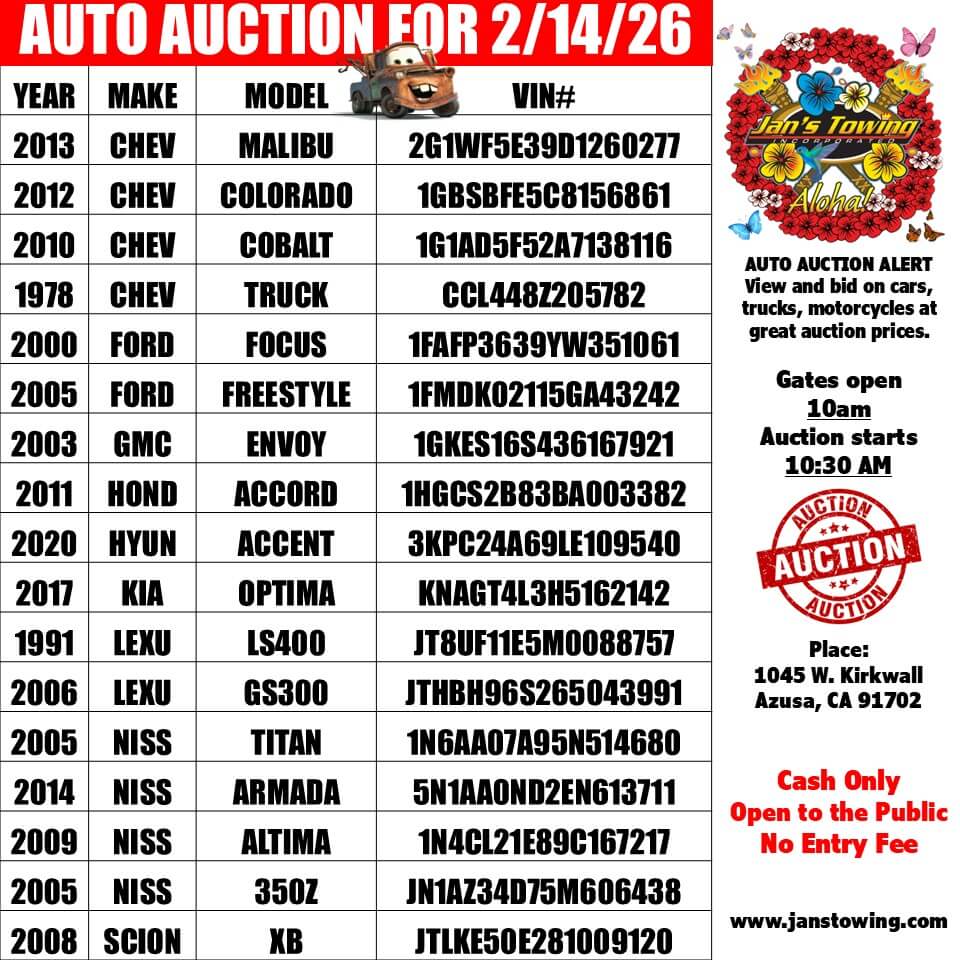 © 2024 Jan's Towing, Inc. Azusa CA